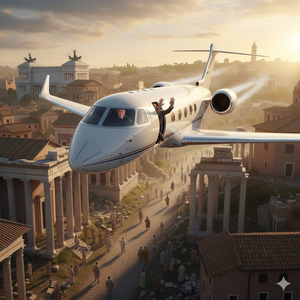 Buffett could trivially fly in on a private airplane (rented NetJets is his preference these days) that would dazzle those ancients to the point of thinking he’s a deity from the sky.